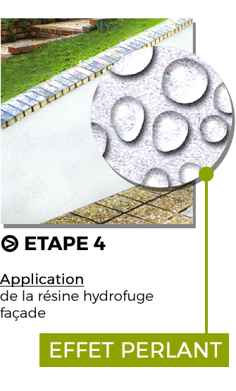 Sa faculté hydrophobe permet à l'eau qui ruisselle sur vos murs de ne pas pénétrer dans le revêtement, c'est « l'effet perlant ».